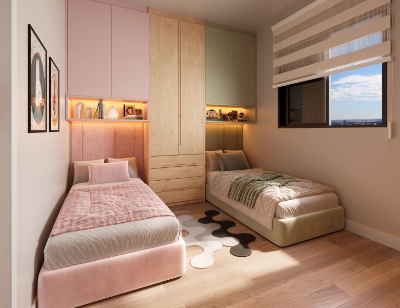 Apartamentos na planta com opções de 2 ou 3 quartos, com suíte e varanda